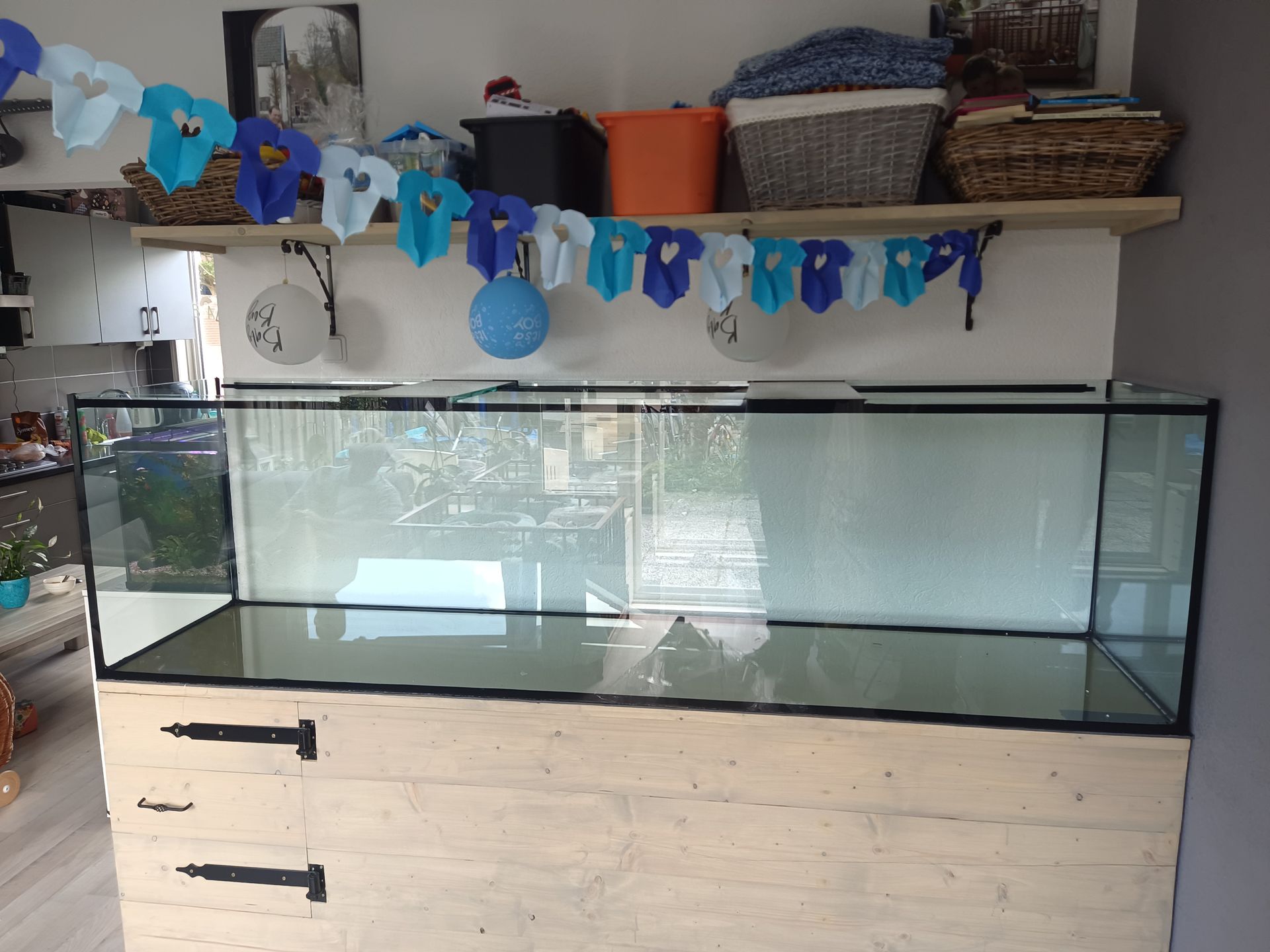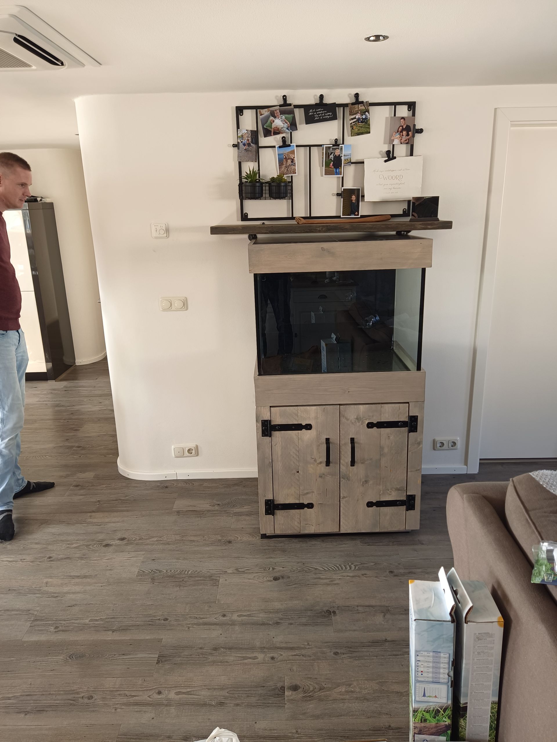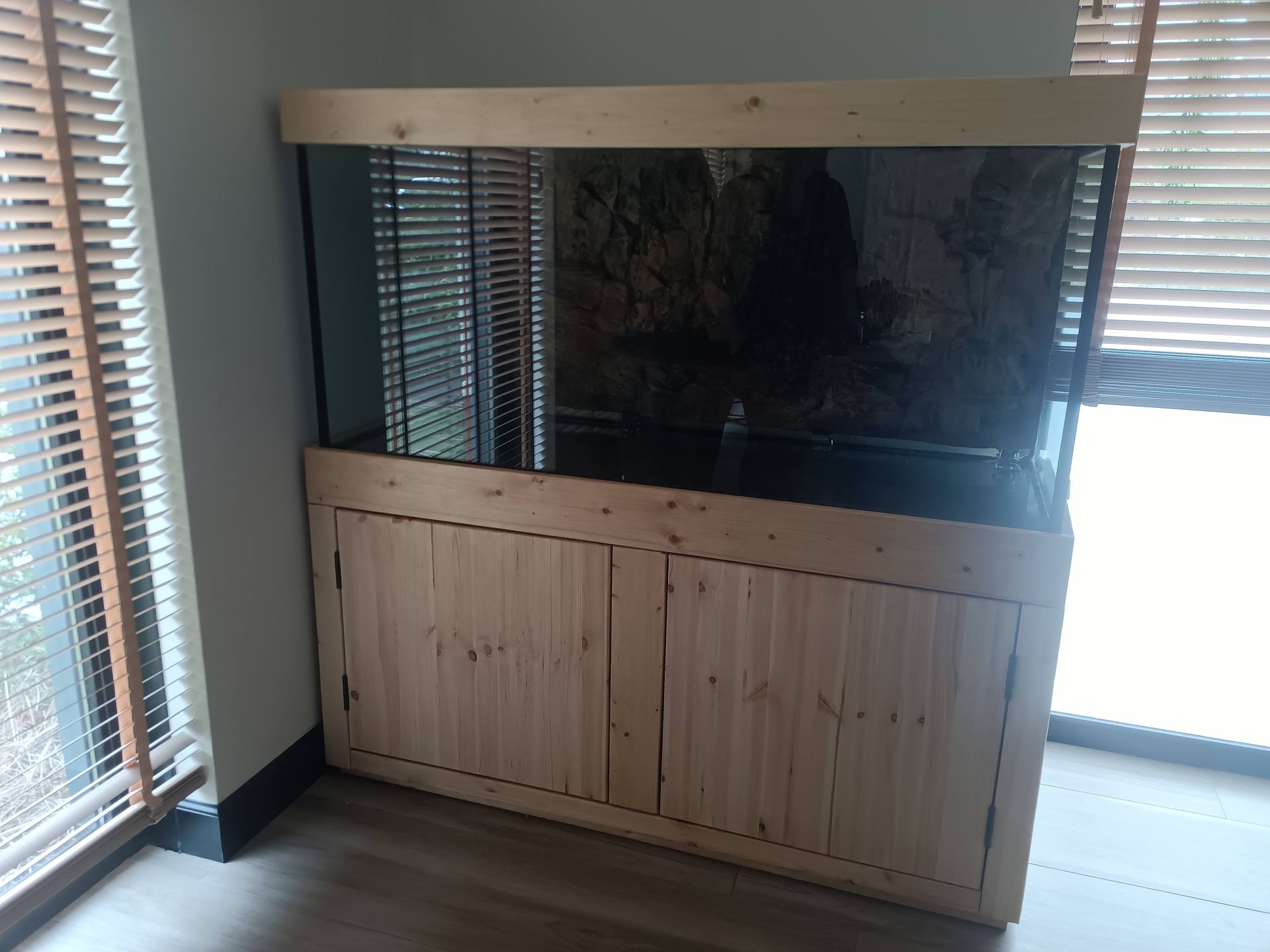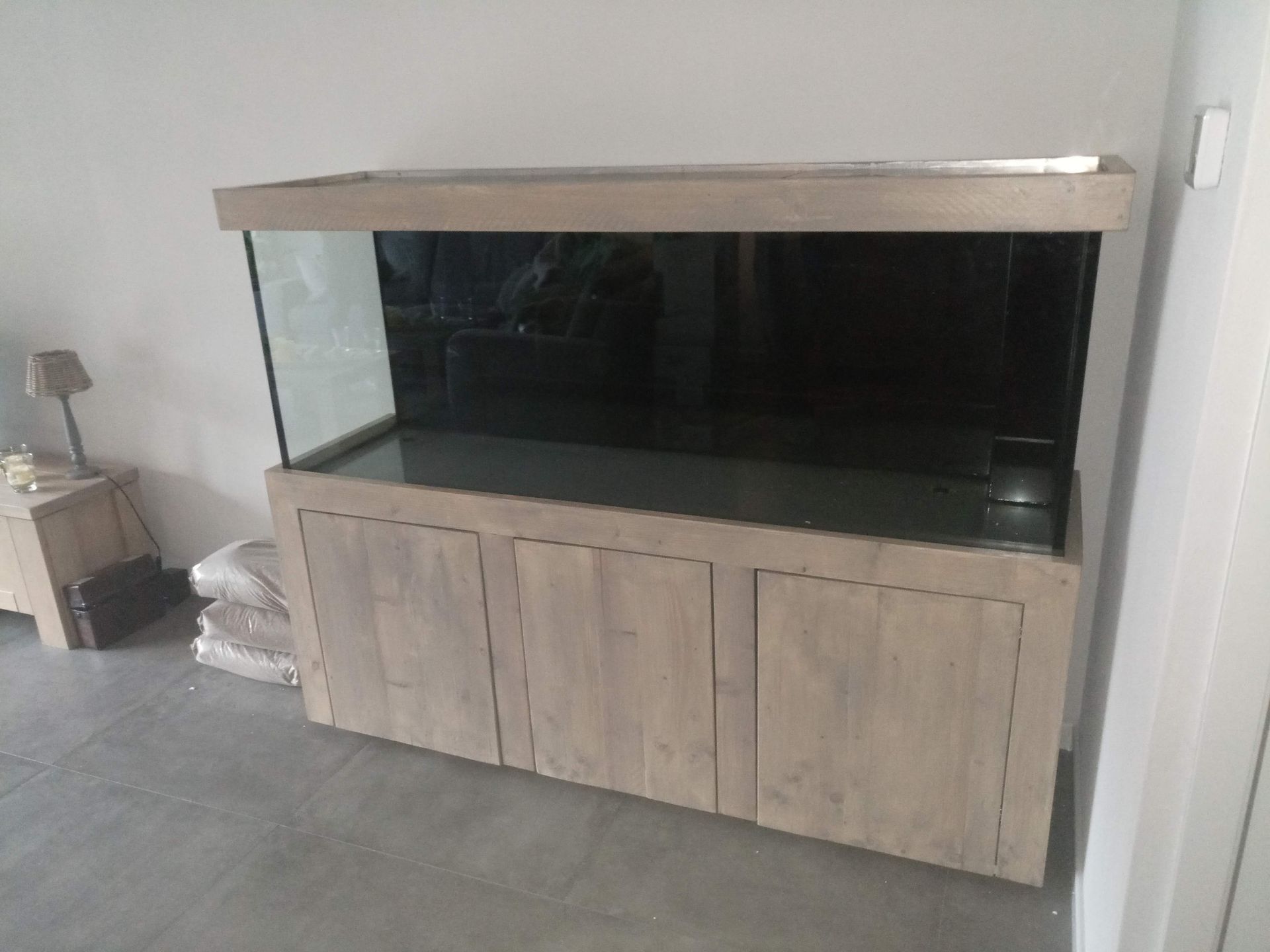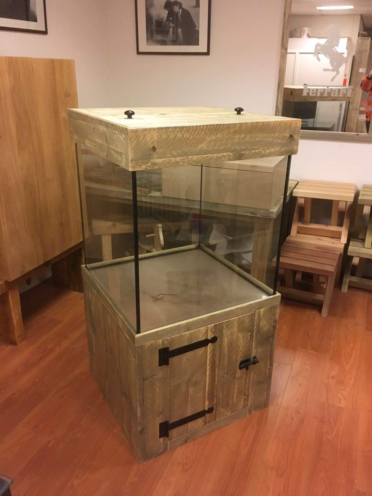 Een veel verkochte stijl aquariummeubels is de industriële look van steigerhout al dan niet afgewerkt met zwart hang en sluitwerk.